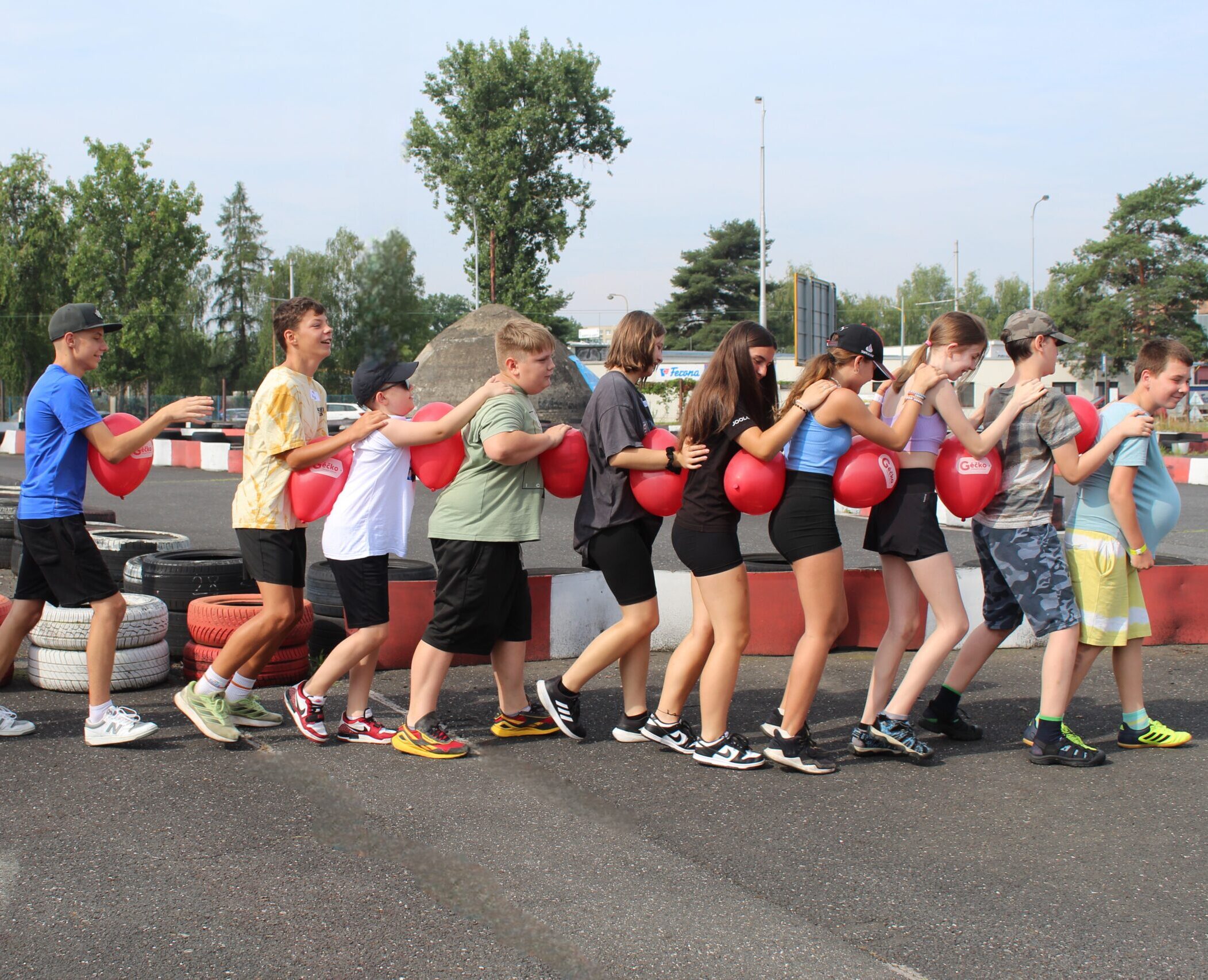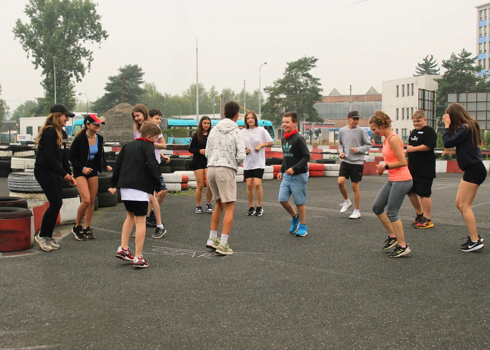 Děti se učí spolupráci při mechanických výzvách, týmových startech nebo tvorbě vlastního brandingu.